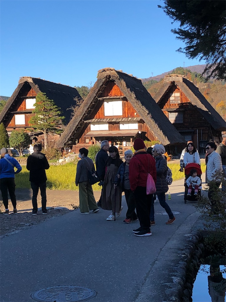 2023-11-22 白川郷・合掌造り集落 一度来てみたかった☝️ 白川郷です✨ 🏠藁葺き屋根🏠 🌎世界文化遺産🌎 静かな集落に観光客でガヤガヤ😅 申し訳ないなぁ~~~と思いながら💦 冬、雪の中や☃❄ライトアップされてるものだったりまた、趣が違うんだろうな‼️😎 もう少しゆっくり見たかった🥺ツアー参加なので仕方ない😭 #はてなブログ #旅行 #白川郷